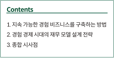특히 MICE라는 오프라인 콘텐츠를 제작하고 실행하는 주체 관점에서 경험 비즈니스가 가지고 있는 복잡성을 제대로 해결하려면, 단순히 ‘부족한 예산이 문제’라고 외치는 대신 ‘재정적으로 지속 가능한 경험 비즈니스 모델의 구축’에 대해 더욱 섬세하고 엄밀한 담론을 제시할 필요가 있겠다. 이에, 본 고에서는 세계경험기구(World Experience Organization, 이하 WXO) 캠프파이어 보고서(Campfire Reports)에서 제시된 경험 비즈니스 수익화 전략을 중심으로, 투자자 친화적 재무 모델 설계 전략을 통해 MICE산업의 확장 가능성을 모색하고자 한다.