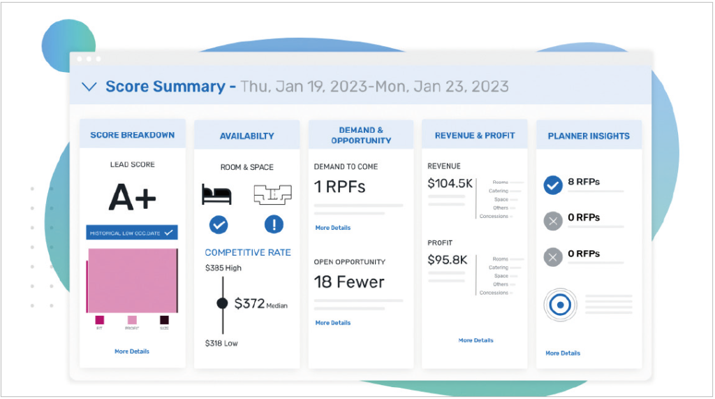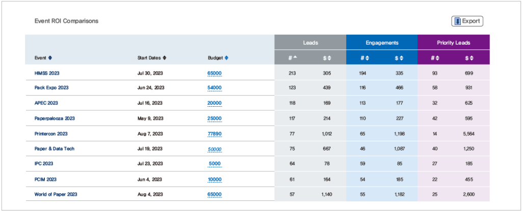 AI는 참가자의 행동 패턴을 분석하여 자동으로 리드 스코어를 산정한다. 세션 참여도, 콘텐츠 다운로드, 질문 참여, 네트워킹 활동 등 다양한 상호작용을 종합적으로 평가하여 0-100점 척도의 리드 스코어를 제시하기도 하고, 리드별 알파벳 등급을 보여주기도 한다. 이는 CRM 시스템과 연동되어 영업팀이 우선순위를 정하는 데 활용되며, 리드의 질적 수준을 시각적 등급으로 표현하여 직관적인 이해를 도울 수 있다. 또한, 여러 행사를 주최하는 경우, 행사별 리드창출 결과를 비교 분석하게 될 경우, 어떤 행사를 더욱 키워야하고, 어떤 행사는 리드 창출 부분에 있어 개선이 필요한지 등을 알 수도 있을 것이다.