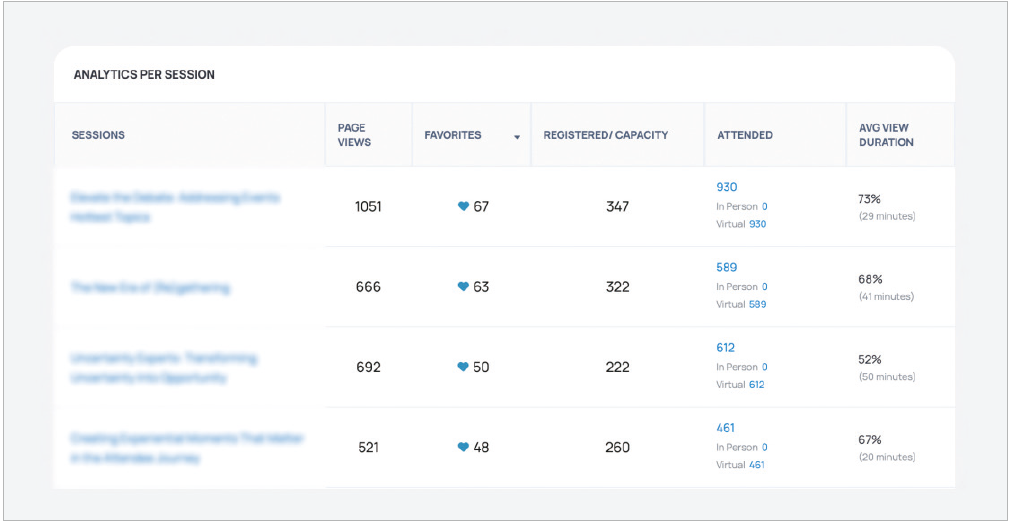 ▲ 세션별 반응 분석 화면 예시(자료: Bizzabo)