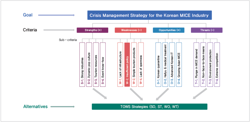 – 김용석(2021). Crisis Management Strategy for the Korean MICE Industry Using SWOT-AHP-TOWS Analysis.