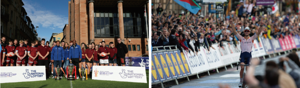 ▲ (왼)2021년 럭비 리그 월드컵 (자료: Event Impacts), (오)UCI 사이클링 월드 챔피언십 (자료: VisitScotland)