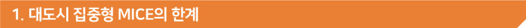 그간 MICE산업은 주로 대규모 국제 행사를 유치하고, 국내 주요 도시들이 글로벌 MICE 도시로 자리매김하도록 핵심 거점에 자원을 집중하는 전략을 펼쳐왔다. 이에 따라 과거 MICE 행사는 베뉴와 호텔과 같은 집적시설의 위치와 규모가 가장 중요했다면, 이제는 단순히 시설의 규모를 넘어, 사람들이 회의와 컨벤션을 개최하고 싶은 곳을 결정하는 데 있어 행사장 외부와 주변 환경의 질이 더 중요해졌다. 본 고에서는 이러한 대도지 집중형 전략의 한계와 함께, 이선도시와 삼선도시가 새로운 MICE 개최 도시로 부상하는 현상에 대하여 살펴보고자 한다.